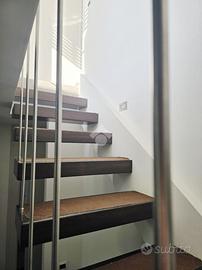 Una scala interna in legno ed acciaio, elemento architettonico di grande impatto estetico, collega al secondo livello, dove si sviluppano una cameretta, un secondo bagno con doccia e un balcone terrazzato con vano lavanderia. Dal corridoio si accede al secondo terrazzo a livello, ulteriore spazio esterno vivibile, perfetto da personalizzare in base alle proprie esigenze.