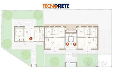 PONCARALE In signorile contesto condominiale in corso di costruzione, proponiamo nuovo trilocale al piano primo con box al piano interrato. Posizionato in tranquillo contesto residenziale, attorniato da ville singole e bifamiliari, il complesso si compone da un piccolo condominio di sole 5 unità e una villa di testa, con accesso pedonale indipendente e carraio in comune con il condominio. Dalle moderne architetture, il complesso è costituito da due appartamenti trilocali con giardino esclusivo al piano terra, due soluzioni trilocali serviti da doppia terrazza al piano primo e un ampio appartamento al piano attico. Tutti gli appartamenti sono collegati al piano interrato, che ospita i box di pertinenza, attraverso la scala condominiale e l'ascensore. Le soluzioni potranno usufruire delle migliori e più recenti tecnologie, a partire da un impianto domotico per il controllo degli infissi e dei carichi, implementabile con i moduli per la gestione della sicurezza e la gestione dell'immobile. L'impianto di riscaldamento e raffrescamento autonomo con pompa di calore e ventilazione meccanica a semplice flusso, coadiuvati dall'impianto fotovoltaico, garantiranno il confort climatico con una economica gestione dei consumo. Tutte le soluzioni verranno dotate di infissi di ultima generazione altamente isolanti, dal grande impatto scenografico. Una particolare attenzione è stata dedicata alla progettazione con la creazione di soluzioni trilocali con ampio soggiorno con parete cottura, con accesso alla loggia o al portico attraverso un'ampia vetrata. Viene inoltre progettato un vano ripostiglio lavanderia. La zona notte si compone di due camere e un bagno con doccia. I rivestimenti saranno fatti con materiali di prima scelta in gress porcellanato con ampia possibilità di personalizzazione. Nel vano interrato, raggiungibili attraverso il vano condominiale con ascensore, ogni appartamento avrà associato un box di pertinenza con sezionale. La scelta di un immobile in costruzio