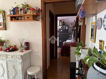 Un comodo e ampio ingresso ci conduce alla prima camera matrimoniale e proseguendo, il disimpegno ci accompagna verso la cucina abitabile e al bagno finestrato con doccia.
