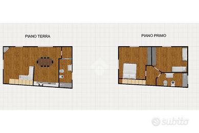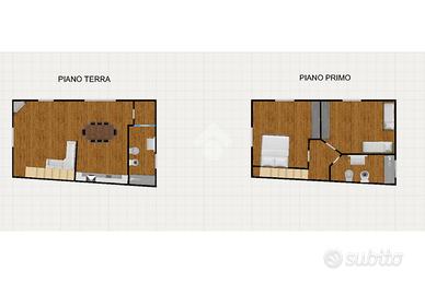Al piano terra troviamo la zona giorno spaziosa cucina a 'vista' e bagno finestrato; tramite una scala interna raggiungiamo il piano primo composto da due camere da letto e un bagno finestrato.