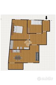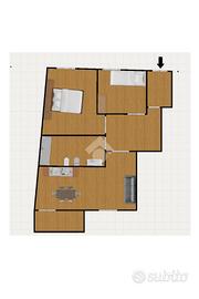Composto da una camera matrimoniale, una cameretta, un bagno e zona giorno con cuicina a 'vista'.