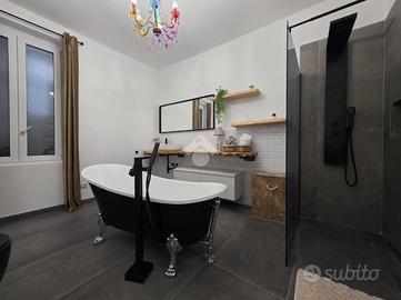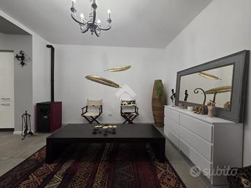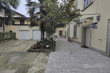 PONTE SAN PIETRO-ELEGANTE PORZIONE SEMI INDIPENDENTE CON BOX DOPPIO In contesto tranquillo e riservato, nel comune di Ponte San Pietro, proponiamo in vendita elegante porzione semi-indipendente recentemente ristrutturata, caratterizzata da uno stile contemporaneo, ambienti armoniosi e un'attenta cura dei dettagli che rendono l'abitazione pronta da vivere. L'immobile, si sviluppa su più livelli per una superficie complessiva di circa 168 mq , offrendo spazi ampi e ben organizzati. Al piano terra si viene accolti da una luminosa zona giorno, dove il soggiorno e il salotto si fondono in un ambiente elegante e funzionale, valorizzato da finiture moderne, tonalità neutre e materiali di qualità che conferiscono calore e raffinatezza agli spazi. La disposizione interna permette di vivere la zona giorno in modo fluido, ideale sia per momenti di relax sia per accogliere ospiti. Completa il piano una comoda lavanderia, pratica e ben integrata. Salendo al primo piano si accede alla zona notte, pensata per garantire comfort e privacy. La camera padronale, spaziosa e ben illuminata, è arricchita da un bagno en suite dal design moderno, mentre la seconda camera matrimoniale si presta perfettamente sia come stanza per ospiti sia come camera per famiglia. Il piano è completato da un ulteriore bagno di servizio, rifinito con gusto e funzionalità. All'esterno, la proprietà offre un piacevole portico, uno spazio ideale per pranzi all'aperto, momenti di convivialità o semplicemente per godere della tranquillità del contesto. Il cortile e le aree esterne contribuiscono a creare un ambiente riservato e vivibile. Completa la proprietà un ampio box doppio, con superficie di circa 26 mq , perfetto per ospitare due autovetture oltre a garantire ulteriore spazio di deposito. L'immobile rappresenta una soluzione ideale per chi desidera indipendenza, spazi generosi e uno stile moderno, inserita in un contesto tranquillo ma comodo ai principali servizi.