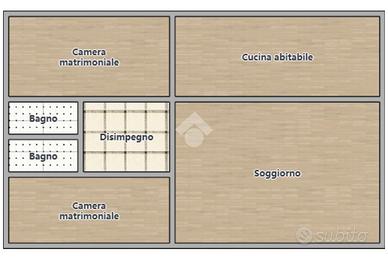 L'ingresso si apre su un soggiorno accogliente, seguito da una cucina abitabile perfetta per pranzi e cene in famiglia. La zona notte è composta da due camere da letto matrimoniali di buone dimensioni e due bagni, una caratteristica non sempre scontata in immobili di questa tipologia.