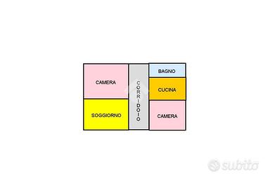 L'immobile si compone di: ingresso, soggiorno e cucina abitabile, prima camera da letto matrimoniale, bagno dotato di tutti i sanitari e la vasca, e seconda camera matrimoniale dalle generose metrature.