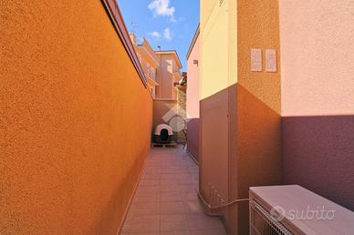 L'appartamento è suddiviso in 75mq interni e 30mq box auto, è dotato di finiture moderne e di alta qualità, che includono un portone blindato, cappotto termico, condizionatori inverter e riscaldamento a pavimento. La proprietà vanta una Classe Energetica A2, sinonimo di sostenibilità e risparmio energetico.