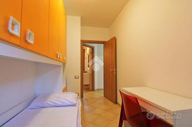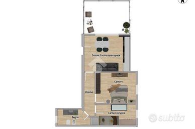 L'ingresso vi accoglie in un luminoso soggiorno con cucina open space, che si apre su un ampio terrazzo ideale per godersi momenti di relax all'aperto. Proseguendo lungo il disimpegno, troverete una spaziosa e luminosa camera matrimoniale e una camera singola. Completa l'appartamento un comodo bagno finestrato con box doccia. Inoltre, avrete a disposizione un pratico posto auto.