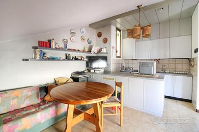 La soluzione, mansardata, si apre su un soggiorno con angolo cottura, preceduto da un grazioso ed ampio terrazzo con vista mare.