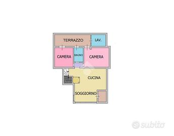 Soggiorno e cucina open space, con angolo living verandato e luminoso, bagno con finestra recentemente rimodernato, due camere di cui una matrimoniale e una singola, entrambe con accesso al terrazzino posteriore dove è presente un piccolo locale adibito a lavanderia.