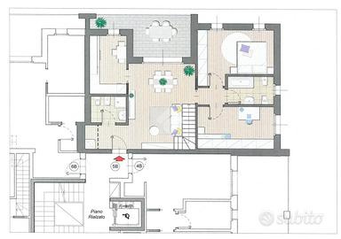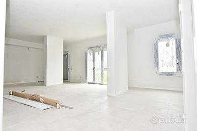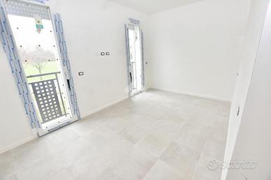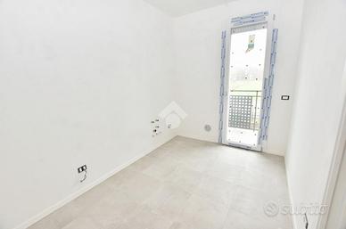 L'appartamento è così composto: ingresso in disimpegno con zona lavanderia e primo servizio cieco con la doccia, zona giorno con sala da pranzo ed uscita sul terrazzo privato, cucina abitabile e due camere matrimoniali divise dal secondo servizio finestrato con la vasca.