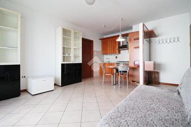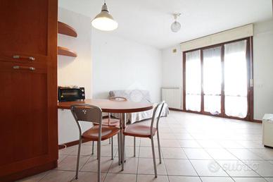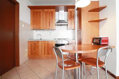 All'ingresso veniamo accolti dall'ampio e luminoso open-space con angolo cottura e l'accesso al comodo terrazzo.