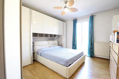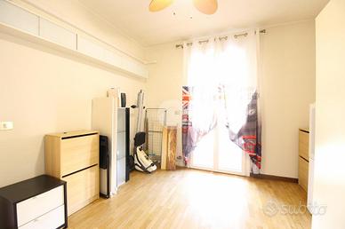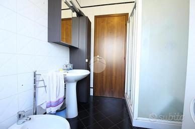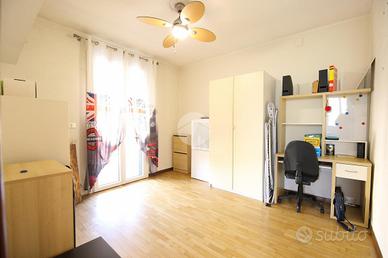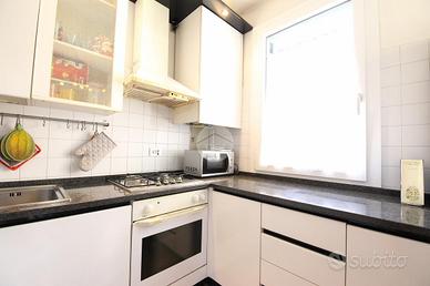 L'abitazione si apre su una zona giorno luminosa con angolo cottura, servita da un terrazzo vivibile. La zona notte, separata da un disimpegno, ospita una camera matrimoniale con poggiolo, una camera singola con terrazzo e un bagno finestrato dotato di box doccia.