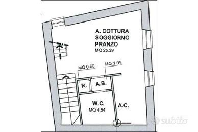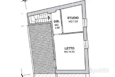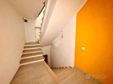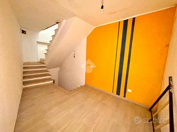 L'appartamento si compone come segue: un vano scale collega l'ampio ingresso ad un largo disimpegno che, a sua volta, conduce tramite scale alla zona giorno composta da soggiorno, angolo cottura e bagno con doccia. Un'altra scala, poi, collega la zona giorno alla zona notte, ubicata al terzo e ultimo piano e composta da una camera matrimoniale e una cameretta.