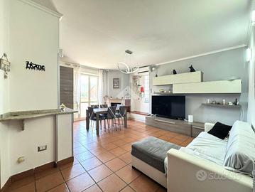 L'immobile offre spazi ben distribuiti e funzionali, la zona giorno è composta da un open space che affaccia sulla cucina luminosa e spaziosa, ampio balcone con vista aperta. Proseguendo troviamo la zona notte, dove ci accoglie un disimpegno che conduce ad una camera matrimoniale ampia e luminosa con uscita sul balcone, una seconda camera matrimoniale ed il bagno cieco con doccia.