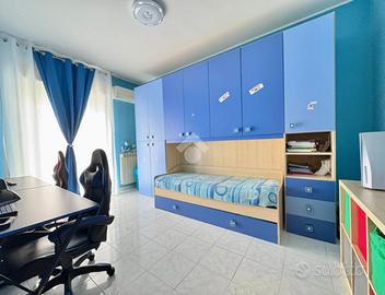 Parco Meteora, in una traversa del Corso Campano, a ridosso del Ponte di Surriento, proponiamo in vendita una soluzione con box auto. Sito al secondo piano, il grazioso trilocale ci accoglie in cucina con angolo salottino, il disimpegno da accesso alla camera da letto, alla cameretta, al bagno con vasca e ad una comoda lavanderia. La metratura interna è di 75 mq circa e dispone al piano terra di un box auto con serranda automatica che ha un secondo ingresso dalla cassa scale. L'esposizione è doppia, con balconi su due lati dell'immobile con esposizione est - ovest.
