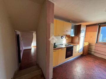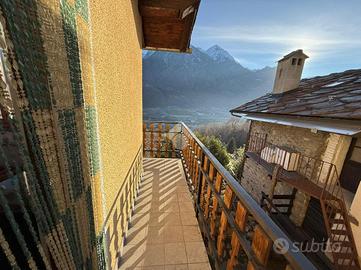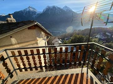 Nel comune di Quart, Frazione La Balma, casa semindipendente disposta su due livelli + il piano interrato adibito alle cantine. L'ingresso è indipendente con accesso diretto sulla cucina abitabile. Il soggiorno è luminoso e ampio, separato dalla cucina. Tramite una scala interna si accede direttamente al piano superiore. La zona notte ospita due camere entrambe con accesso diretto sul balcone. Completa un bagno al piano della zona giorno e un bagno al piano della zona notte. Completa l'immobile l'area verde, un cortile esterno e una legnaia a 100 metri dalla casa dove si possono realizzare posti auto e box auto. Nella parte accanto a questo immobile, c'è una parte a grezzo con accesso indipendente dove poter realizzare una seconda unità.