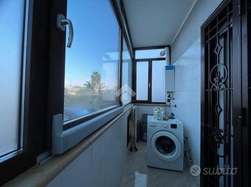 La soluzione interamente è così divisa: dalla porta d'ingresso blindata, accediamo a sinistra direttamente ad una zona living a vista composta da soggiorno e cucina con uscita a sinistra su un primo balcone verandato con cucina esterna e a destra del soggiorno è possibile accedere ad un TERRAZZO A LIVELLO (da completare).
