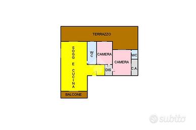 La soluzione interamente è così divisa: dalla porta d'ingresso blindata, accediamo a sinistra direttamente ad una zona living a vista composta da soggiorno e cucina con uscita a sinistra su un primo balcone verandato con cucina esterna e a destra del soggiorno è possibile accedere ad un TERRAZZO A LIVELLO (da completare).