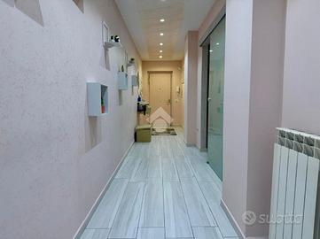 La soluzione è stata completamente ristrutturata e rifinita con ottimi materiali, pavimento grès porcellanato effetto legno color bianco con sfumature grigie, controsoffittatura con faretti, infissi a doppio vetro con taglio termico con gas in pvc , zanzariere, tende sa sole, caldaia baxi , condizionatori (uno di haier 18000watt di potenza ed uno haier 9000 watt) riscaldamento autonomo e gas metano.