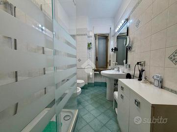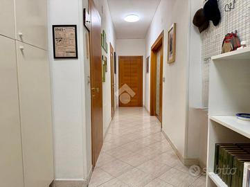 La soluzione è così composta: entrando dalla porta d'ingresso si viene accolti da un comodo ingresso, uno spazio che dà subito respiro e accompagna lo sguardo verso il resto della casa, distribuendo in modo ordinato tutti gli ambienti. Proseguendo, troviamo alla nostra sinitra il salone e alla nostra destra la cucina abitale con uscita ad un primo balcone spazioso e perfetto per momenti di relax all'aperto, con esposizione ad est. Una porta divide la zona giorno dalla zona notte composta da camera da letto matrimoniale con uscita ad un secondo balcone con esposizione sud , cameretta con uscita allo stesso bnalcone della cucina e due bagni, uno padronale ed uno di servizio entrmabi con piatto doccia. Infine l'appartamento gode anche di un comodo ripostiglio.