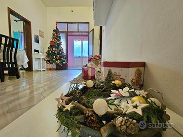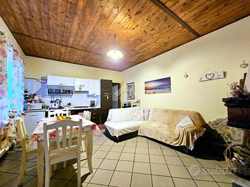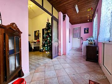 L'ampio ingresso permette di raggiungere i vari ambienti della casa. Dal loggiato si accede alla cucina abitabile con caminetto e dispensa ed al bagno finestrato con box doccia.