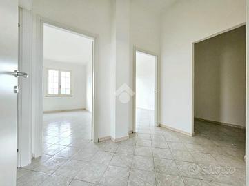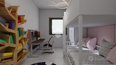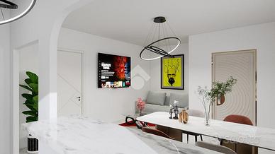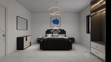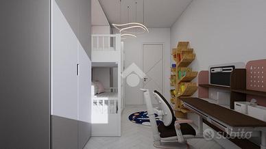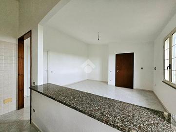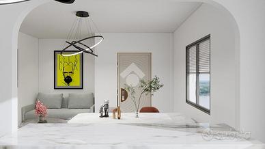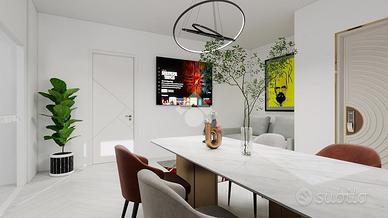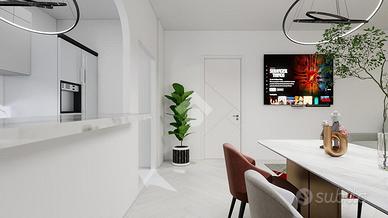 La zona giorno consiste in soggiorno spazioso con una elegante zona cottura, dotata di un pratico bancone, da cui si accede ad un balcone che abbraccia tre lati dell'appartamento. Un disimpegno guida verso la zona notte, caratterizzata da una camera matrimoniale ampia e luminosa, una camera singola versatile e un bagno finestrato dotato di doccia, pensato per il massimo comfort.