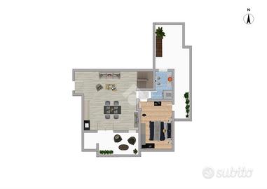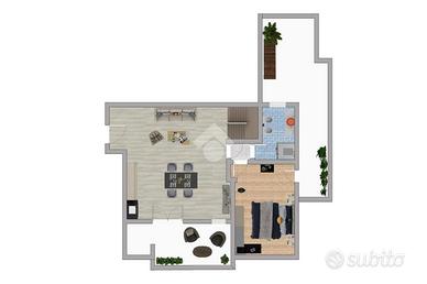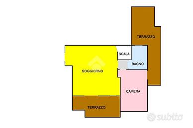 L'immobile è composto al secondo piano da ingresso, zona giorno open space con accesso al terrazzo abitabile, una camera matrimoniale con accesso ad un ulteriore terrazzo abitabile e un bagno finestrato. Al piano superiore troviamo una stanza con possibilità di ricavare un'altra camera e un bagno finestrato con velux.