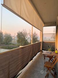 Il bagno, finestrato e dal design moderno, è affiancato da una lavanderia separata anch'essa finestrata, un dettaglio pratico e sempre più ricercato. Il balcone vivibile, dotato di tende automatiche, rappresenta uno spazio esterno perfetto.