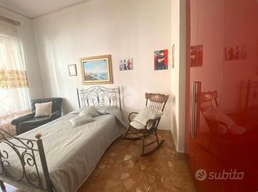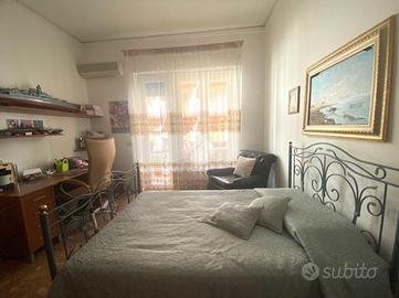 L'appartamento posto al primo piano di uno stabile degli anni '60, presenta un ingresso su salotto, una cucina con annessa sala da pranzo, due camere da letto e due bagni.
