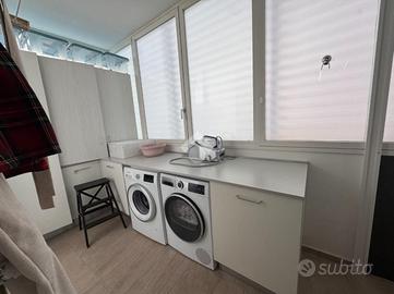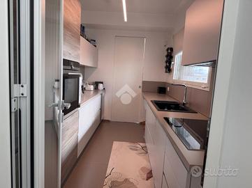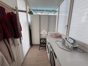 L'ingresso si apre su un ampio soggiorno luminoso, ideale per vivere e ricevere. La cucina super organizzata, realizzata su misura, è valorizzata da una splendida finestra con affaccio su area verde pubblica, un dettaglio raro e prezioso in contesto urbano. Completano la zona giorno una lavanderia separata e un terrazzo di generose dimensioni, perfetto per momenti di relax all'aperto.La zona notte ospita due camere da letto e un bagno elegante, in un equilibrio perfetto tra funzionalità e comfort.