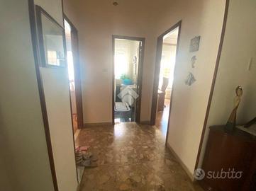 L'appartamento posto al primo piano di uno stabile degli anni '60, presenta un ingresso su salotto, una cucina con annessa sala da pranzo, due camere da letto e due bagni.