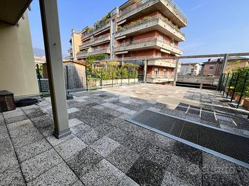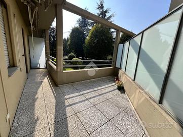 RANICA: Nella rinomata "Zona Torrette" di Ranica, con tutte le tipologie di negozi e servizi sotto casa, proponiamo elegante trilocale posto al piano primo (con ascensore) dotato di doppi servizi, cucina separata e meravigliosa terrazza esterna di ben 80 mq. L'appartamento è dotato di riscaldamento autonomo ed internamente si dispone con ingresso, luminoso soggiorno con comodo ripostiglio, cucina separabile ed abitabile, disimpegno, un primo bagno finestrato dotato di doccia (ristrutturato di recente), un secondo bagno/lavanderia cieco ed infine due camere da letto (singola e matrimoniale). Gli sfoghi esterni sono due: un primo terrazzo, intimo e spazioso, è infatti accessibile dal soggiorno; ma la vera chicca dell'appartamento è il secondo sfogo esterno, accessibile dalla cucina. Si tratta infatti di una terrazza di ben 80mq, perfettamente esposta al sole, ideale per pranzi e cene all'aperto. L'appartamento è dotato di allarme, le tapparelle sono elettriche e l'impianto elettrico è stato recentemente rivisto. Il mobilio della cucina è compreso nel prezzo. Esternamente, le facciate sono state ritinteggiate nel 2021. La soluzione è poi completata da un ampio box singolo e da una comoda cantina.