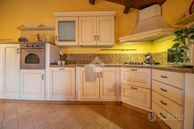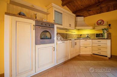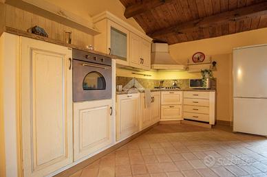 L'ingresso conduce alla zona giorno, caratterizzata da un suggestivo camino che crea un'atmosfera accogliente, e dalla quale si accede alla cucina separata.