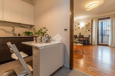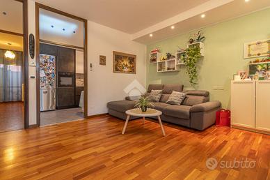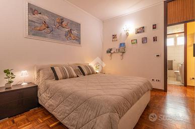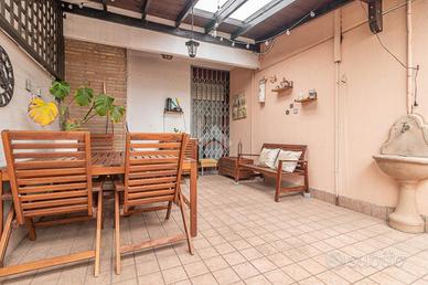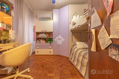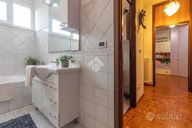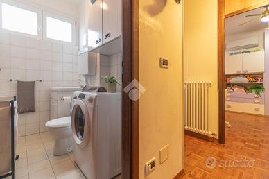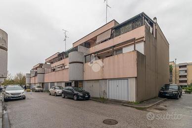 RAVENNA zona SAN BIAGIO: Appartamento con 2 camere da letto, terrazzo e garage di proprietà. Appartamento al secondo e ultimo piano in contesto condominiale. Accedendo al piano un terrazzo di 23mq caratterizza la zona giorno dell'appartamento, comodo per chi vuole vivere momenti in compagnia all'aperto, entrando all'interno dell'immobile la zona giorno è composta da soggiorno e cucina abitabile. Un corridoio ci conduce alla zona notte composta da due camere da letto una matrimoniale, che ha accesso al terrazzo, ed una doppia con accesso a un balcone verandato comodo da utilizzare come ripostiglio, concludono la zona notte i due bagni finestrati uno adibito a zona lavanderia. Conclude la soluzione il garage di proprietà al piano terra dal quale è possibile accedere tramite una scala interna alla cantina di dimensione uguale al garage.