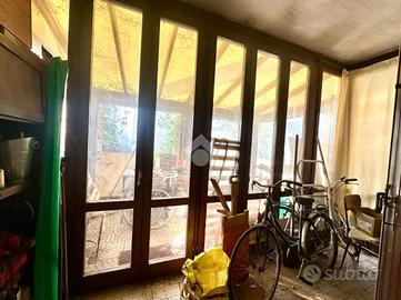 Piano Terra: ingresso con accesso diretto al giardino privato verandato ideale per momenti di relax o cene all'aperto.