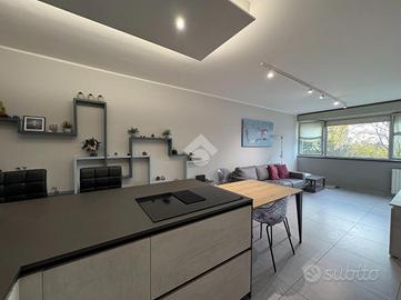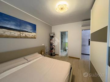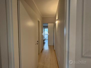 RAVENNA, zona DRADI: Luminoso appartamento di ampia metratura. Due camere matrimoniale, doppi servizi, tutto ristrutturato nel 2021 con cantina e garage di proprietà. Situato al piano secondo, l'immmobile è caratterizzato da ampia luminosità. Appena varcata la soglia, troviamo un pratico vano lavanderia di fronte all'ingresso. Sulla destra, una porta conduce alla prima, accogliente camera matrimoniale, con accesso a un comodo balcone loggiato, e al primo bagno, cieco e dotato di funzionale box doccia. La zona giorno, spaziosa e luminosa, è il vero cuore pulsante della casa. Qui, il soggiorno con angolo cottura si distingue per la sua luminosità e offre accesso diretto al secondo balcone,anch'esso loggiato, ideale per momenti di relax. Dalla zona giorno si accede alla seconda camera matrimoniale, che dispone di un secondo bagno privato, anch'esso cieco e completo di box doccia, garantendo massima privacy e comfort. L'immobile è stato oggetto di una completa e accurata ristrutturazione nel 2021, assicurando finiture moderne. Completano la proprietà un comodo garage e una cantina di proprietà raggiungibili tramite l'ascensore.