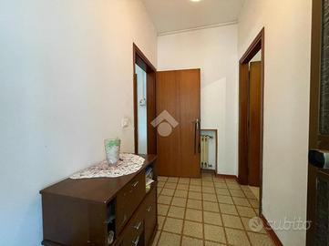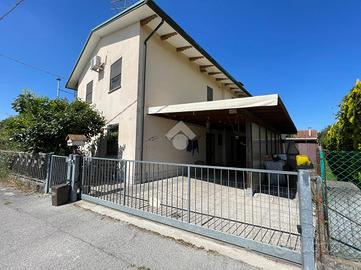 L'appartamento, che è al piano terra è composto da ingresso, un bagno, una cucina-soggiorno, due camere da letto, una zona ripostiglio ed una zona lavanderia; in esterno è presente una porzione di corte ad uso esclusivo che comprende un portico utilizzato ad oggi come posteggio per l'auto.