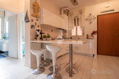LIDO DI SAVIO: Proponiamo appartamento disponibile per la stagione estiva 2025, con ampio terrazzo vista mare. L'immobile si trova al primo piano ed è raggiungibile tramite comodo ascensore. Entrando nella soluzione troviamo la zona giorno con angolo cottura e terrazzo abitabile, mentre la zona notte è composta da due camere da letto di cui una matrimoniale, una doppia e bagno finestrato con box doccia. Dispone di aria condizionata, lavastoviglie, lavatrice e tv. Posto auto nell'area condominiale. Disponibile per giugno e luglio.