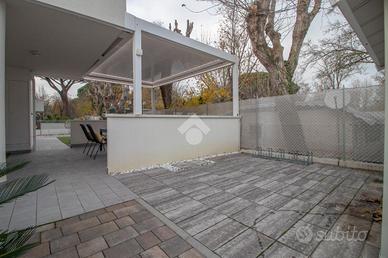 LIDO DI SAVIO: Proponiamo un immobile di nuova costruzione edificato nel 2021 in classe A4 in contesto di sole 4 unità con ampio giardino. La soluzione è composta da: un ampia zona pavimentata all'esterno, troviamo una bio climatica dove poter pranzare all'aperto, soggiorno con angolo cottura e un piccolo ripostiglio, disimpegno,bagno finestrato con box doccia, camera da letto matrimoniale e seconda camera matrimoniale con secondo bagno completo con box doccia e finestrato. Completa la soluzione, riscaldamento pavimento, aria condizionata, allarme, inferiate, doccia solare esterna e due posti auto, impianti a norma, completamente arredato. NO spese condominiali. Consegna immediata. CHIAMA E FISSA UN APPTAMENTO