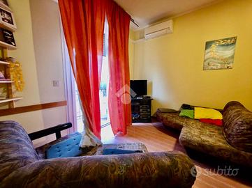 L'immobile è composto da soggiorno con angolo cottura, con accesso diretto al balcone, due camere da letto, di cui una con uscita sul balcone, e bagno finestrato.