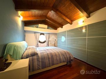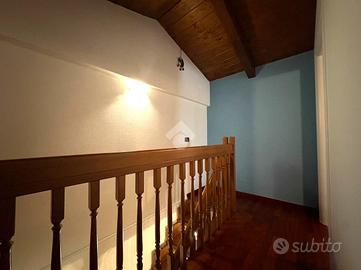 Salendo le scale interne posizionate all'ingresso che si arriva al piano primo: qui troviamo una prima camera da letto con soffitto in legno a vista, che dona calore e carattere all'ambiente.