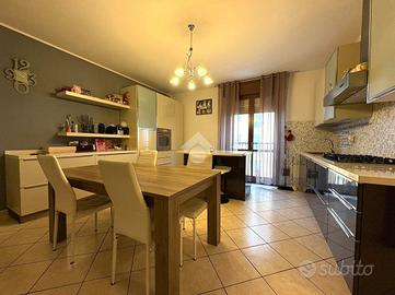 L'ingresso si apre sulla zona giorno dove troviamo la cucina abitabile molto ampia con spazio per tavolo da pranzo e zona operativa ben organizzata.