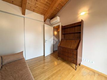 La seconda camera singola, di buone dimensioni, affaccia su un secondo balconcino e beneficia di una pratica cabina armadio ricavata in nicchia.