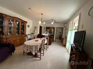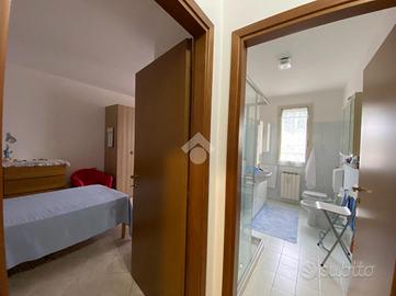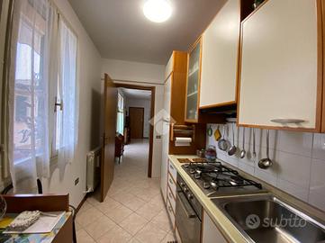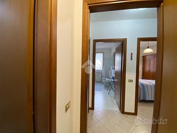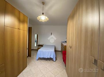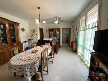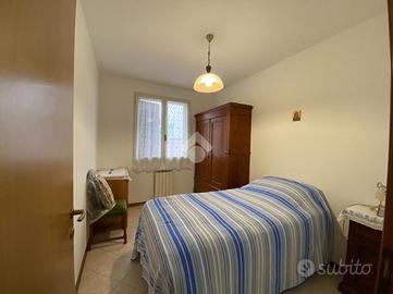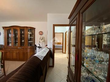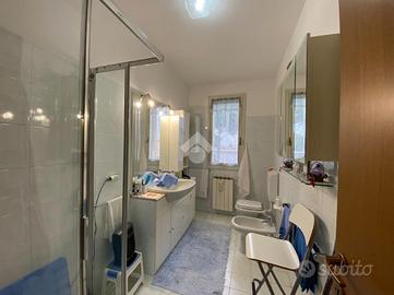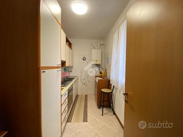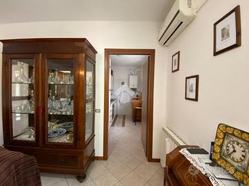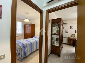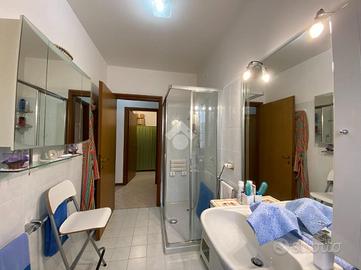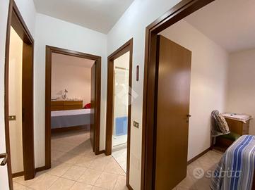 RAVENNA zona SAN PIETRO IN VINCOLI: Appartamento al secondo ed ultimo piano, servito da ascensore, con 2 camere da letto, 2 bagni e ampio terrazzo. Garage e cantina di proprietà. Tramite una porta d'ingresso blindata, si accede al luminoso soggiorno con accesso diretto all'ampio terrazzo. Separato dalla zona giorno, troviamo il cucinotto finestrato. Proseguendo verso la zona notte, un disimpegno ci conduce, alla prima camera da letto doppia, al primo bagno finestrato, alla seconda camera matrimoniale ed infine al secondo bagno con antibagno che funge da ripostiglio. Concludono la soluzione la cantina di proprietà e il garage situati entrambi al piano terra. E' presente un doppio parcheggio usufruibili entrambi dai condomini della palazzina. L'appartamento è dotato di riscaldamento autonomo e aria condizionata presente sia nella zona giorno che nel disimpegno della zona notte, entrambi gli split con pompa di calore. Viste sia le generose metrature che l'ubicazione dell'immobile al centro del paese, fa si che l'appartamento goda di interesse per chi volesse adibirlo ad una prima casa vicino ai principali serivizi di San Pietro in Vincoli.