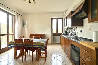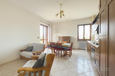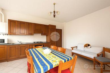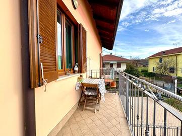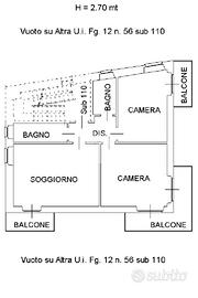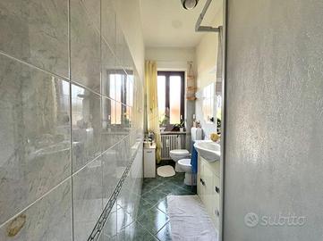 In zona centrale, appartamento sito al secondo piano di una piccola palazzina recentemente ristrutturata. L'immobile, sviluppato su un unico livello abitativo, presenta l'ingresso su disimpegno, soggiorno con cucina a vista con sfogo sul balcone da cui si può godere di una piacevole vista panoramica. Tramite disimpegno si accede alle due ampie camere matrimoniali, entrambe con accesso ai rispettivi balconi, e ai due bagni finestrati. Completano la proprietà il box auto e la cantina al piano terra. RISCALDAMENTO AUTONOMO A METANO