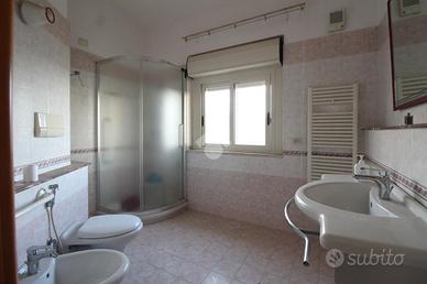 Completano la soluzione due bagni, uno con doccia e uno con vasca, per garantire il massimo comfort a tutta la famiglia.
