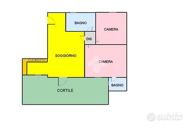 L'appartamento, costruito nel 2004, si compone di soggiorno con cucinotto a vista, accesso al cortile privato, 2 camere da letto e 2 bagni.