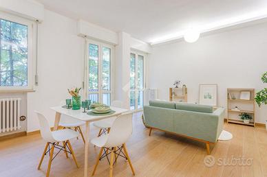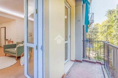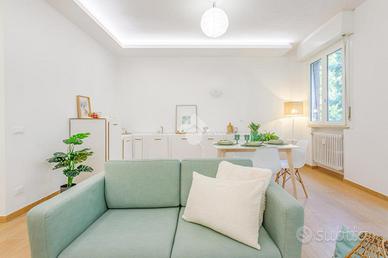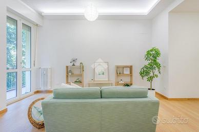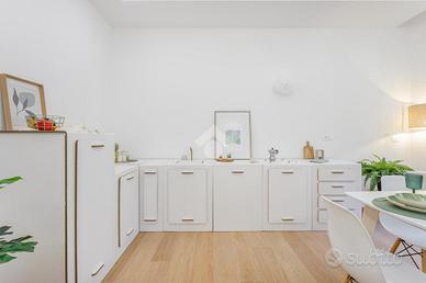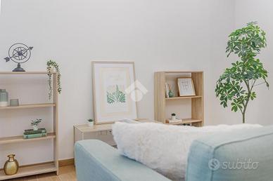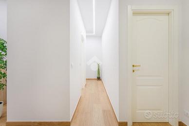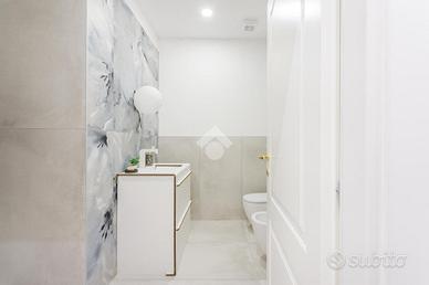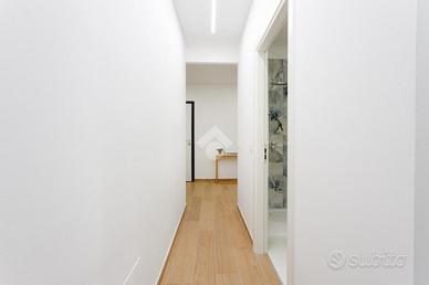 La zona giorno si apre su un luminoso openspace che include la cucina, ideale per chi ama gli spazi aperti e conviviali. Le due camere da letto garantiscono comfort e privacy, mentre i due bagni, anch'essi rinnovati, offrono praticità e stile.