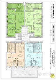 L'intervento prevede la realizzazione di n.11 appartamenti, rispettivamente tre al piano terra con giardino, quattro al primo e quattro al secondo piano, dotati di ampio terrazzo;