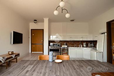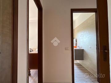 L'appartamento è composto da sala con angolo cottura open space, balcone, disimpegno con bagno finestrato, camera matrimoniale, camera singola e ripostiglio; Al piano terra cantina e garage di pertinenza.