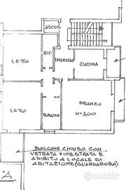 Composto da: una zona giorno ampia e luminosa che si affaccia su un balcone chiuso con vetrata finestrata, una cucina separata con accesso a un secondo balcone verandato, due ampie camere matrimoniali, di cui composta da ampia loggia coperta adibita come cabina armadio, e infine un bagno ristrutturato.